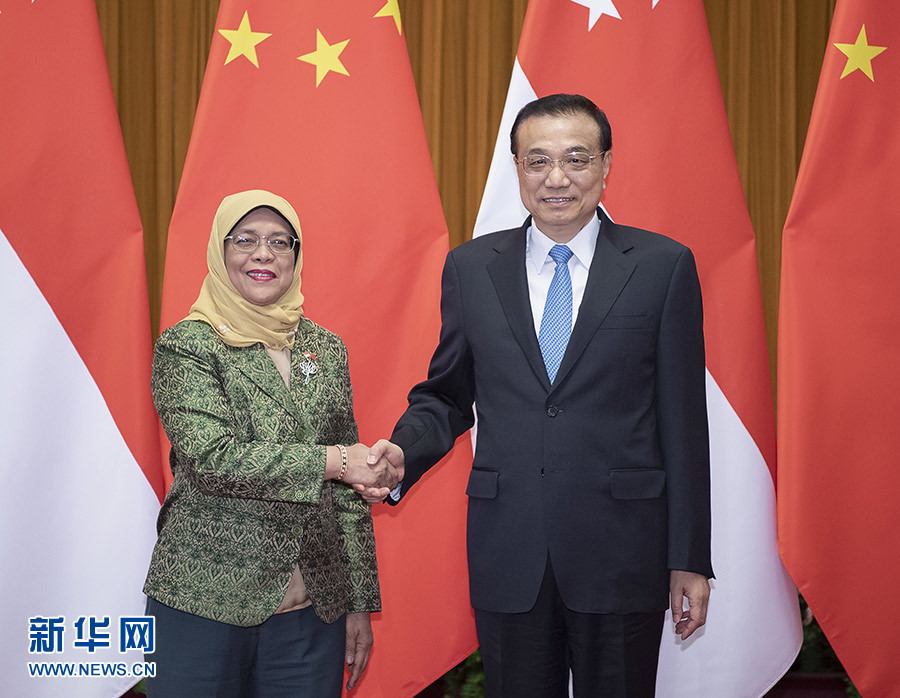 李克強表示,中國和新加坡隔海相望,兩國在相互尊重、平等合作、互利共贏基礎上發(fā)展了良好關系,給兩國人民帶來福祉。新加坡是個多元文明構成的社會。昨天,習近平主席同總統(tǒng)女士舉行了富有成果的會見,展望了兩國關系廣闊前景。中方愿同新方發(fā)揮各自優(yōu)勢,保持良好合作勢頭,繼續(xù)挖掘合作潛力,將“一帶一路”倡議同新方發(fā)展戰(zhàn)略相銜接,推動中國西部地區(qū)和新加坡對接,扎實推進“陸海新通道”、第三方市場、智慧城市、技能培訓等領域合作。希望雙方推進文明和文化的交流,密切人員往來,夯實兩國友好的民意基礎,促進雙邊關系繼續(xù)向前發(fā)展。中方愿同新方共同應對全球性挑戰(zhàn),為世界和地區(qū)的和平穩(wěn)定發(fā)展作出貢獻。