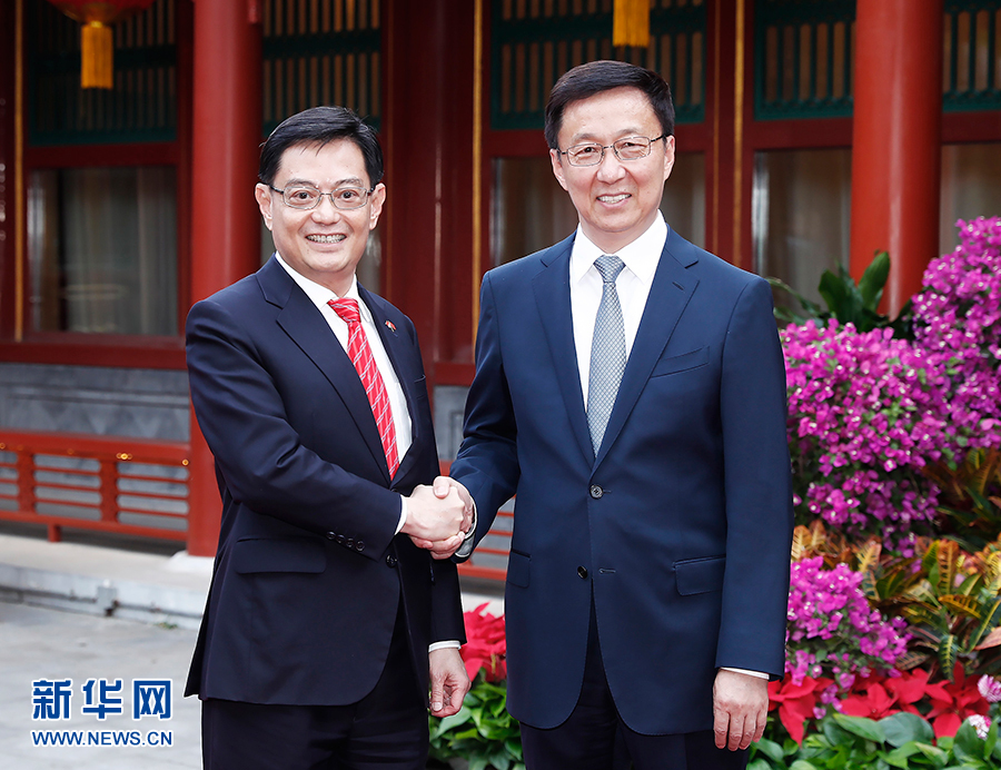 韓正表示,中方高度重視中新關(guān)系,明年兩國將迎來建交30周年,雙方要以此為契機(jī),推動中新關(guān)系在新時(shí)期實(shí)現(xiàn)更大發(fā)展。中方愿同新方一道,落實(shí)好兩國領(lǐng)導(dǎo)人共識,繼續(xù)用好合作機(jī)制平臺,推動各領(lǐng)域務(wù)實(shí)合作取得更大發(fā)展。雙方要保持密切溝通,高質(zhì)量共建“一帶一路”,建設(shè)好“陸海新通道”,深化第三方市場合作,開展粵港澳大灣區(qū)建設(shè)合作,發(fā)揮示范和帶動效應(yīng),推動地區(qū)和沿線國家共同發(fā)展。