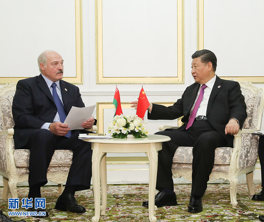 6月14日,國(guó)家主席習(xí)近平在比什凱克會(huì)見(jiàn)白俄羅斯總統(tǒng)盧卡申科。 新華社記者 丁林 攝