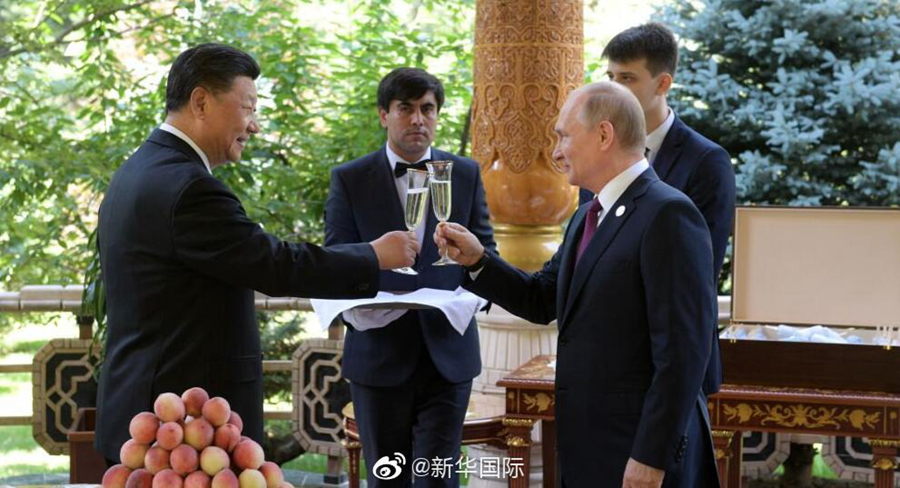 【俄羅斯總統(tǒng)普京當面向習近平主席祝賀生日】俄羅斯塔斯社、俄新社6月15日上午報道稱,據(jù)俄總統(tǒng)新聞秘書佩斯科夫介紹,俄總統(tǒng)普京今天上午在杜尚別出席亞信第五次峰會前親自前往中國國家主席習近平下榻賓館,當面向習主席祝賀66歲生日。普京高度評價習主席在俄中關(guān)系發(fā)展中發(fā)揮的重要作用,強調(diào)不久前習主席對俄進行國事訪問取得圓滿成功,相信俄中關(guān)系將繼續(xù)保持良好發(fā)展勢頭。習主席對普京表示感謝,指出普京在中國很受歡迎。普京總統(tǒng)向習主席贈送俄羅斯冰淇淋,習主席回贈中國茶葉。