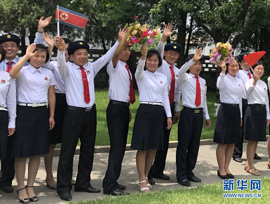 6月20日,中共中央總書記、國家主席習近平乘專機抵達平壤,開始對朝鮮民主主義人民共和國進行國事訪問。這是朝鮮民眾在平壤街頭熱烈歡迎習近平。新華社記者 江亞平 攝