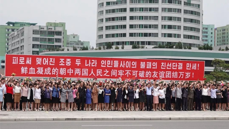 沿路數(shù)十萬朝鮮群眾高呼“朝中友好”“歡迎歡迎”!
