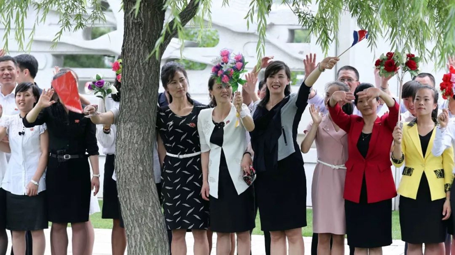 習近平和彭麗媛在金正恩和李雪主陪同下,在這里接受朝鮮黨政領(lǐng)導(dǎo)干部和平壤市民代表致敬,同他們一一握手。這是外國領(lǐng)導(dǎo)人首次在錦繡山太陽宮廣場接受致敬,充分體現(xiàn)了東道主的熱情和敬意!