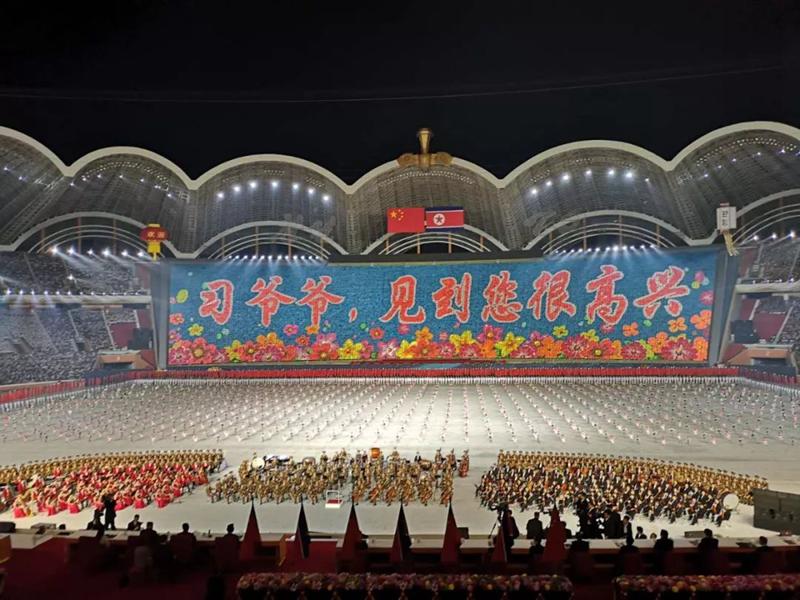 這臺(tái)演出為習(xí)近平此訪專門精心創(chuàng)作,數(shù)萬名朝鮮演員參加表演,朝鮮三大樂團(tuán)首次同臺(tái)獻(xiàn)藝,整場演出氣勢恢宏、震撼感人。