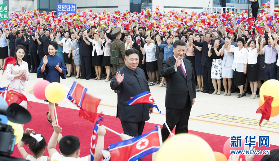 6月21日,中共中央總書記、國家主席習(xí)近平結(jié)束對朝鮮的國事訪問離開平壤回國。離開前,習(xí)近平和夫人彭麗媛出席朝鮮勞動(dòng)黨委員長、國務(wù)委員會(huì)委員長金正恩和夫人李雪主在機(jī)場舉行的歡送儀式。新華社記者 黃敬文 攝