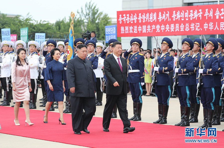 6月21日,中共中央總書記、國家主席習(xí)近平結(jié)束對朝鮮的國事訪問離開平壤回國。離開前,習(xí)近平和夫人彭麗媛出席朝鮮勞動黨委員長、國務(wù)委員會委員長金正恩和夫人李雪主在機(jī)場舉行的歡送儀式。新華社記者 鞠鵬 攝