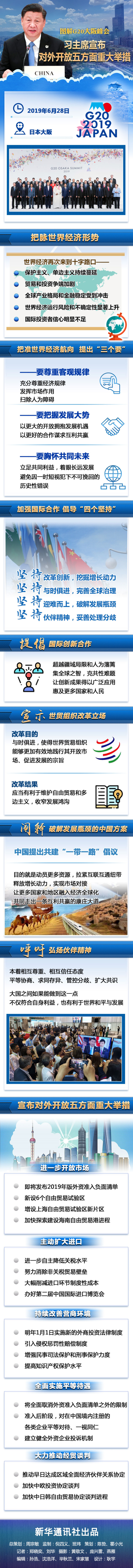 6月28日,習(xí)近平主席在日本大阪舉行的二十國集團領(lǐng)導(dǎo)人峰會上發(fā)表題為《攜手共進,合力打造高質(zhì)量世界經(jīng)濟》的重要講話,宣布對外開放五方面重大舉措。