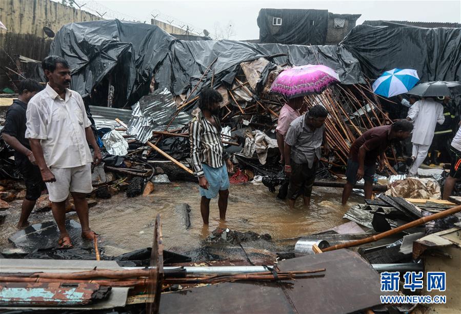 7月2日,在印度孟買,人們聚集在墻體垮塌事故現(xiàn)場(chǎng)。新華社發(fā)