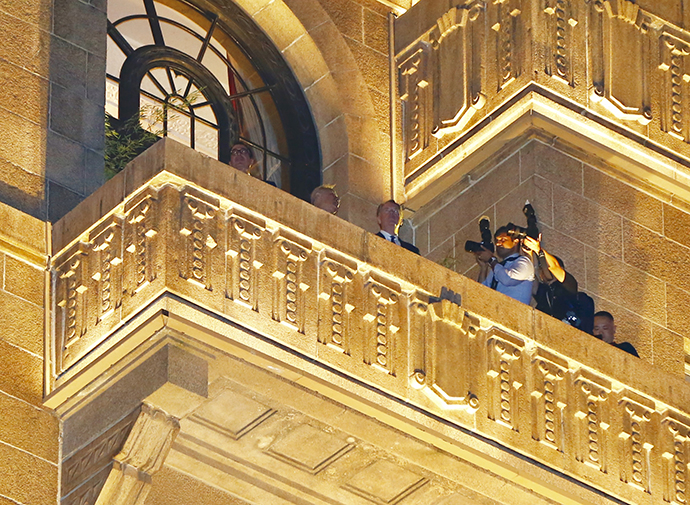 夜色下的浦江兩岸涼風習習,20時05分,劉鶴副總理與美國貿(mào)易代表萊特希澤、財政部長姆努欽登上了和平飯店九樓的露臺共覽浦江。這里還有一個小細節(jié),劉鶴副總理與萊特希澤、姆努欽在露臺上還轉(zhuǎn)過身來以陸家嘴夜景作為背景拍照留念。