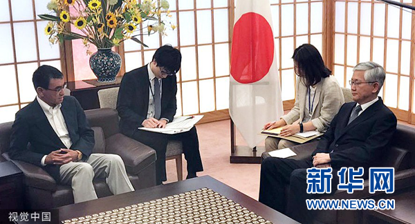7月19日,日本東京,日本外務(wù)大臣河野太郎召見韓國駐日本大使南官杓,抗議韓方對日方提出的成立包含第三國成員的仲裁委員會來解決“強(qiáng)征勞工索賠案”的提議不予回應(yīng)的做法。(圖片來源:視覺中國)