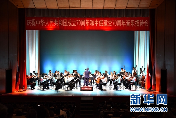 圖為慶祝中華人民共和國(guó)成立70周年和中俄建交70周年音樂(lè)招待會(huì)現(xiàn)場(chǎng)。