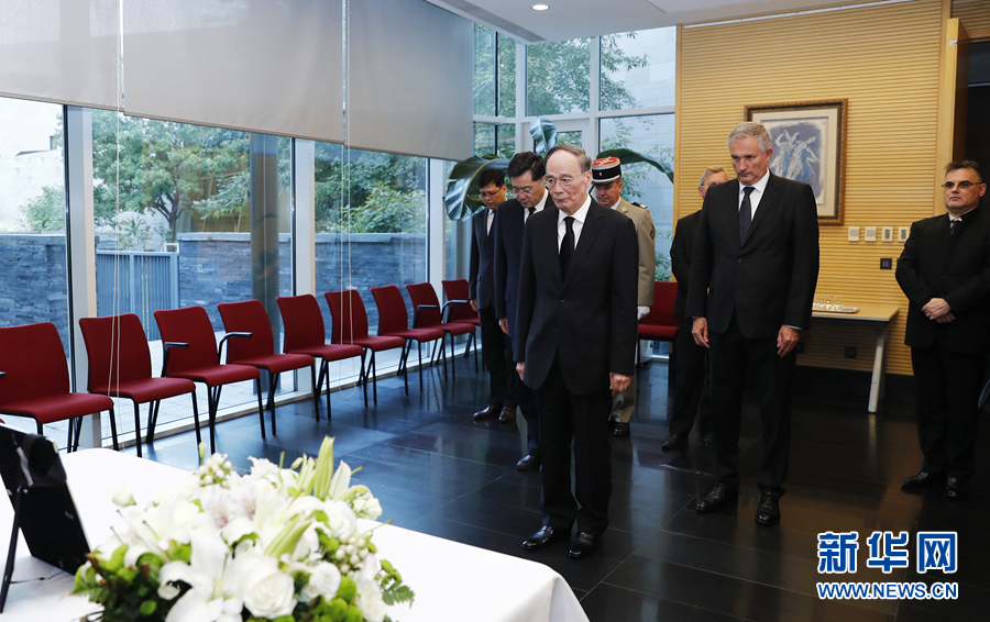 王岐山前往法國(guó)駐華使館吊唁希拉克逝世
