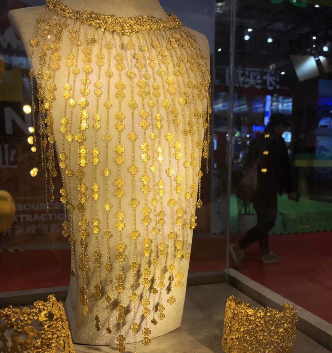 ▲希臘國家館內(nèi)的“水果與象征”珠寶展。珠寶設(shè)計靈感來源于古希臘錢幣上的水果紋飾。新華社記者馬曉燕攝