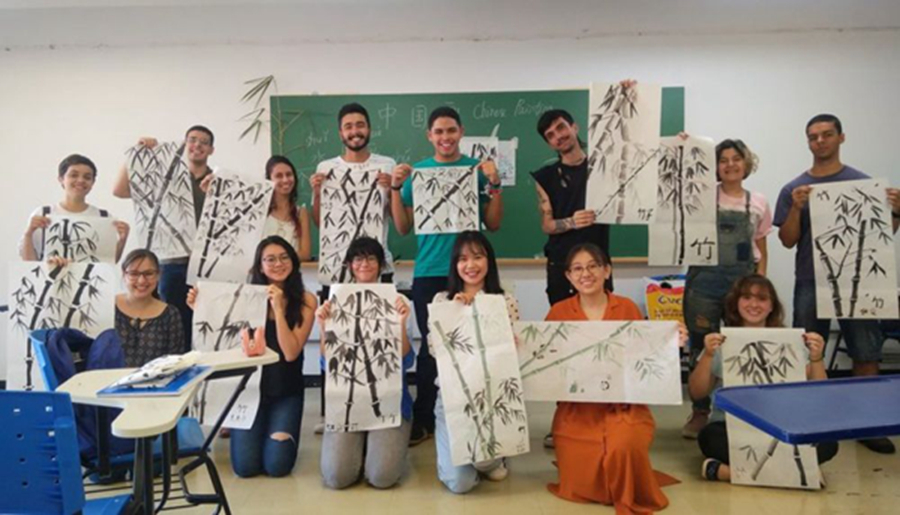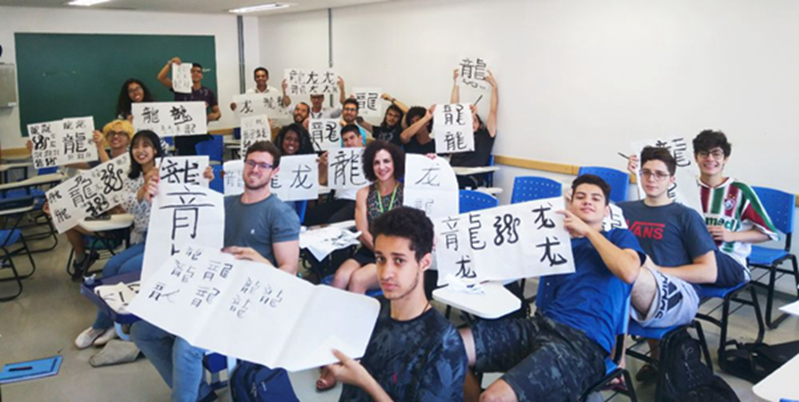 巴西學(xué)生在孔子學(xué)院體驗中國文化。巴西有10所孔子學(xué)院,是擁有孔子學(xué)院數(shù)量最多的拉美國家。