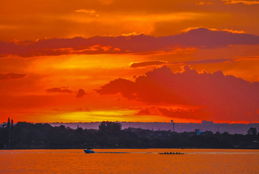 這是2019年11月8日拍攝的巴西利亞帕拉諾阿湖晚霞。新華社記者蘭紅光攝