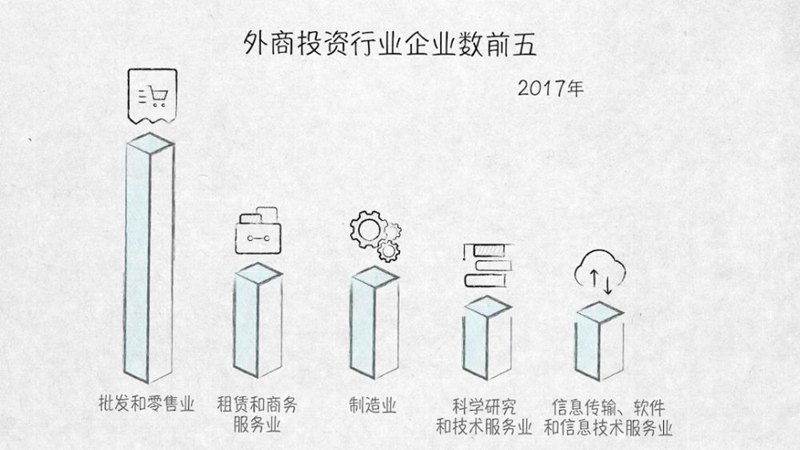 批發(fā)和零售業(yè)則是外商投資企業(yè)最多的行業(yè)