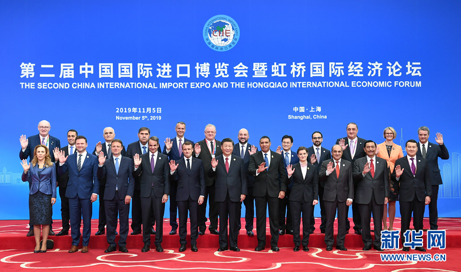11月5日,第二屆中國國際進(jìn)口博覽會在上海國家會展中心開幕。國家主席習(xí)近平出席開幕式并發(fā)表題為《開放合作 命運(yùn)與共》的主旨演講。這是開幕式前,習(xí)近平同外方領(lǐng)導(dǎo)人集體合影。新華社記者謝環(huán)馳攝