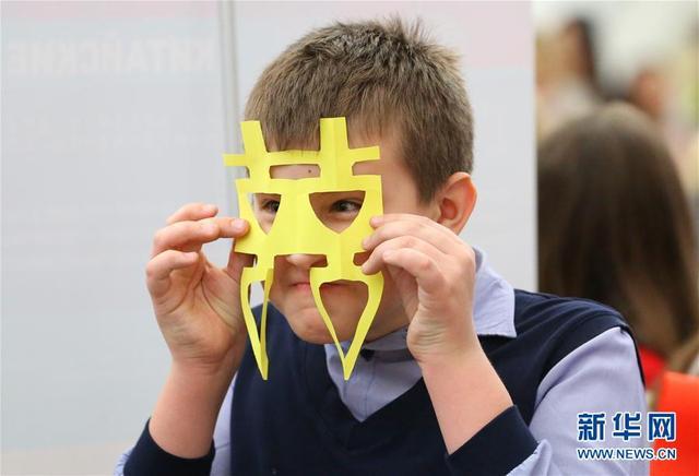 1月16日,在白俄羅斯首都明斯克,一名學(xué)生展示自己的剪紙作品。當(dāng)日,為期四天的“歡樂春節(jié)”演出活動(dòng)在白俄羅斯拉開帷幕。來自中國江西省歌舞劇院的演員們將帶來四場(chǎng)演出,展現(xiàn)中國春節(jié)文化,與當(dāng)?shù)厝嗣窆蚕砜鞓?。新華社發(fā)(任科夫攝)