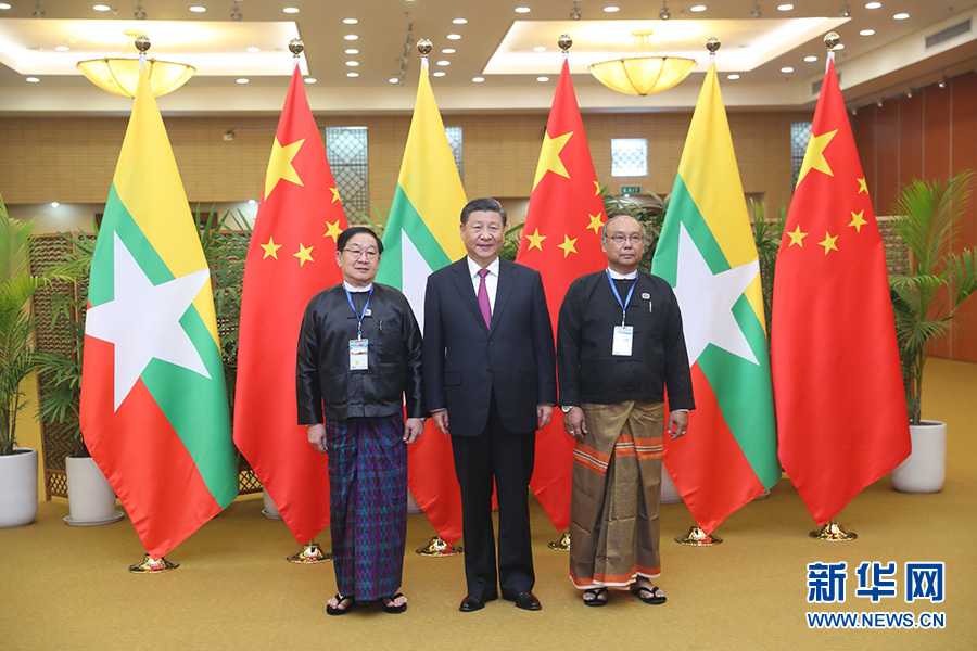 當(dāng)晚,習(xí)近平同緬甸聯(lián)邦議會(huì)議長兼人民院議長蒂昆密和民族院議長曼溫凱丹進(jìn)行了友好交談,并和緬甸主要政黨領(lǐng)導(dǎo)人集體合影留念。