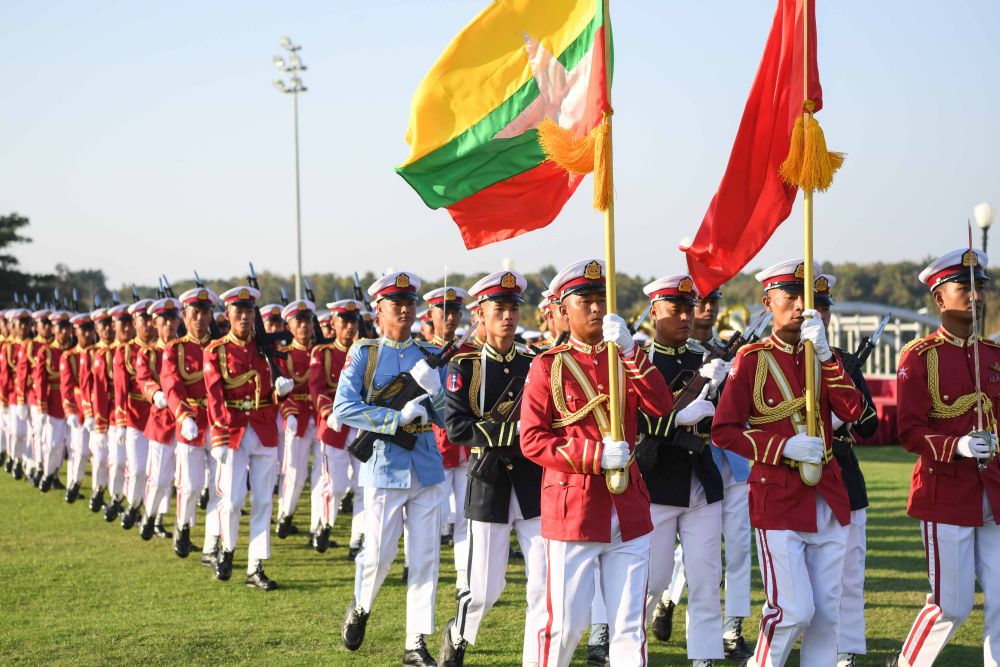 緬甸總統(tǒng)溫敏在總統(tǒng)府前熱情迎候,