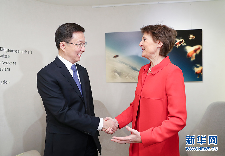 1月20日至21日,應(yīng)瑞士聯(lián)邦副主席帕姆蘭邀請(qǐng),中共中央政治局常委、國(guó)務(wù)院副總理韓正訪(fǎng)問(wèn)瑞士。這是1月21日,韓正會(huì)見(jiàn)瑞士聯(lián)邦主席索馬魯加。 新華社記者 丁海濤 攝
