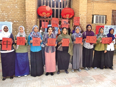 2月25日,在蘇丹喀土穆大學,數十名蘇丹喀土穆大學中文系的學生參加中國文化展覽活動,一起為中國抗擊疫情打氣。新華社發(fā)