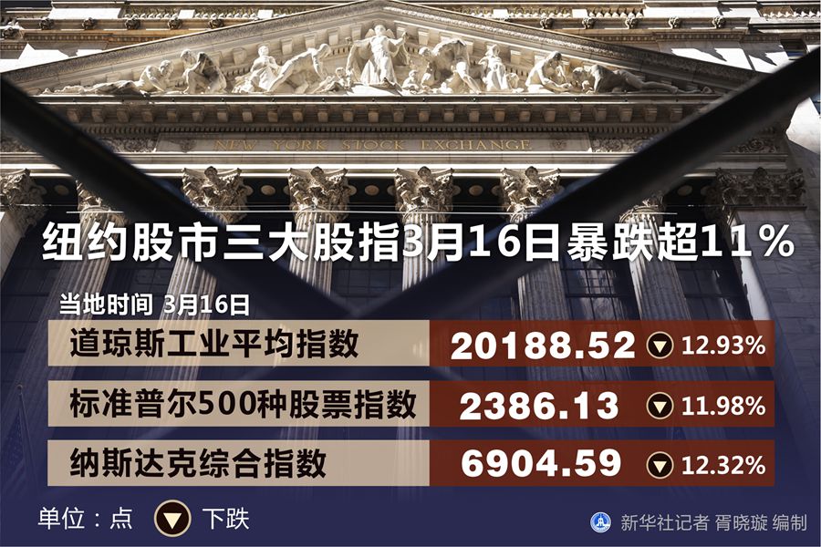 為應(yīng)對新冠肺炎疫情對經(jīng)濟的沖擊,美聯(lián)儲15日宣布緊急下調(diào)基準利率1個百分點并再度啟動量化寬松措施,但金融市場并未給予積極回應(yīng)。紐約股市16日開盤暴跌并再次觸發(fā)熔斷機制,重啟交易后跌幅擴大,收盤時三大股指跌幅均超過11%。