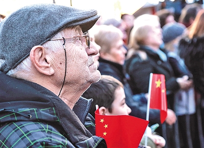 當(dāng)?shù)孛癖娫谝粓鲋黝}為“塞爾維亞人民永遠(yuǎn)和中國兄弟在一起”的音樂會上,手持中國國旗表示對中國的支持。新華社發(fā)