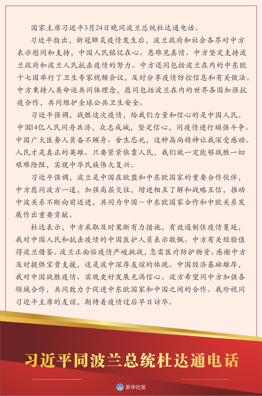 新華社北京3月24日電? 國家主席習近平24日晚同波蘭總統(tǒng)杜達通電話。
