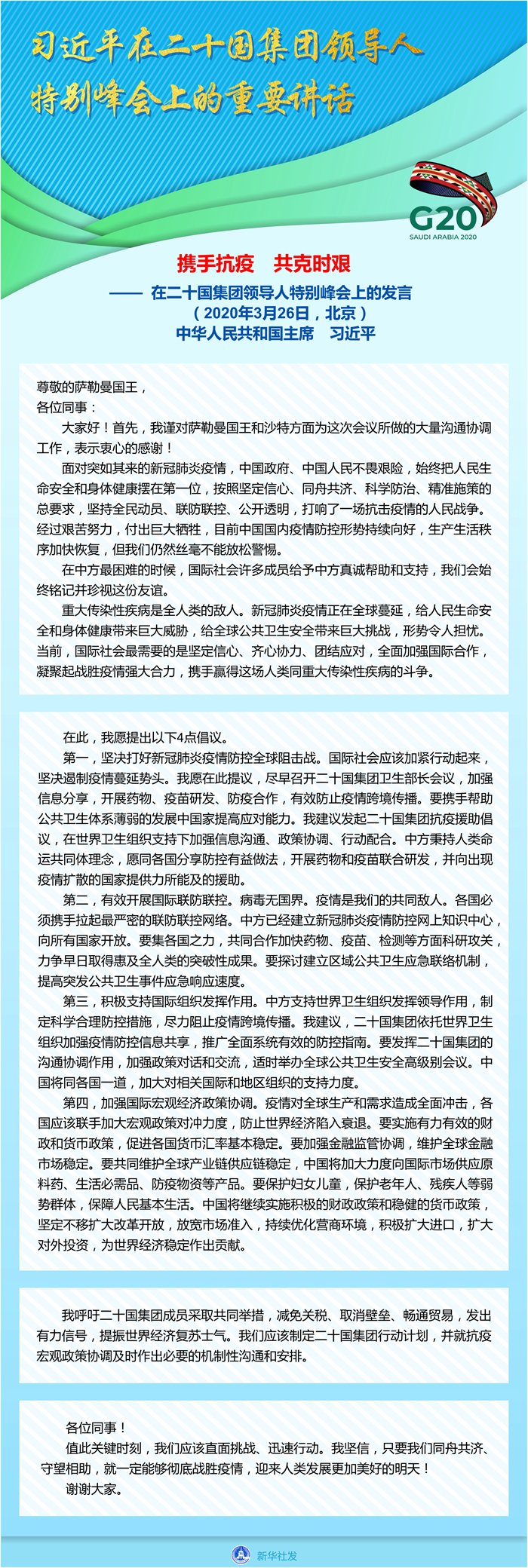 習(xí)近平在二十國集團(tuán)領(lǐng)導(dǎo)人特別峰會上的重要講話(全文)