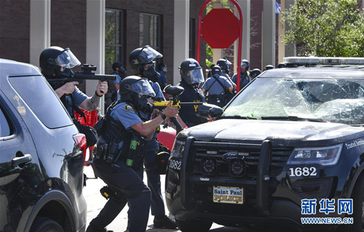 5月28日,在美國圣保羅市,警察與抗議者發(fā)生沖突。新華社/美聯(lián)