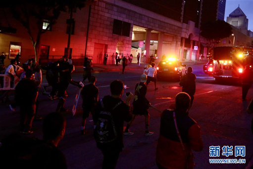 5月29日晚,在美國洛杉磯,抗議者在街頭游行示威。新華社發(fā)