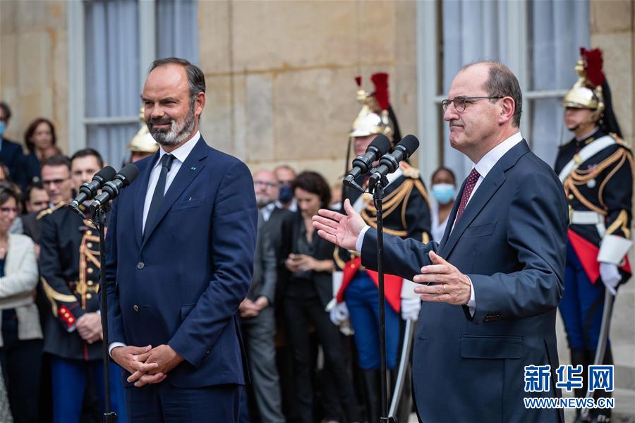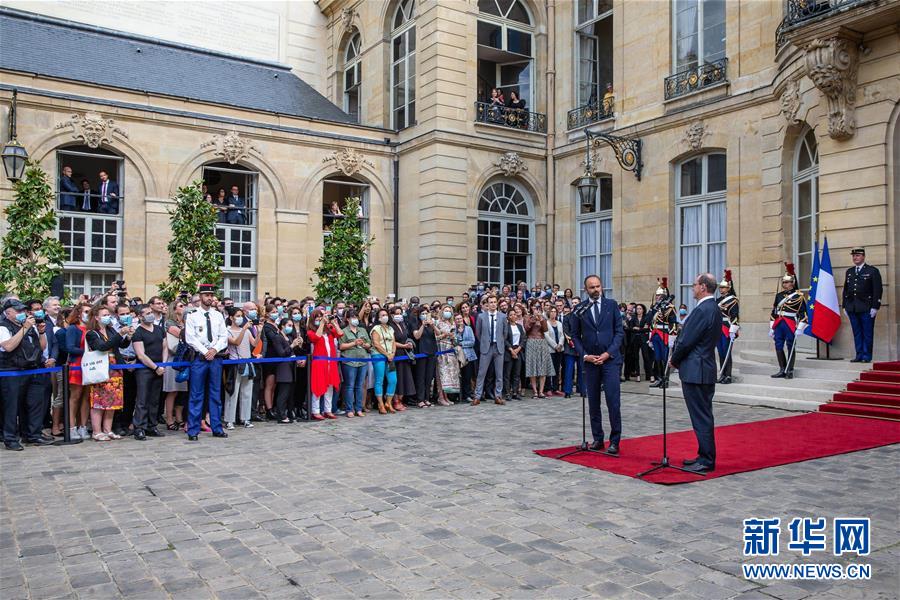 7月3日,在法國巴黎總理府,卸任總理愛德華·菲利普與新任總理讓·卡斯泰出席權力交接儀式。新華社發(fā)(奧雷利安·莫里薩爾 攝)