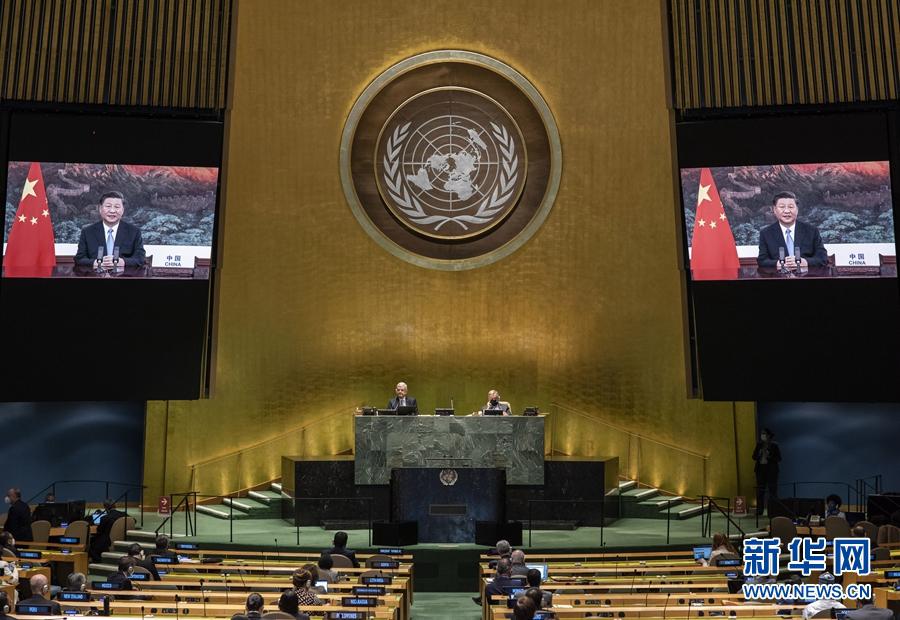 9月22日,國家主席習近平在第七十五屆聯(lián)合國大會一般性辯論上發(fā)表重要講話。新華社發(fā)(聯(lián)合國供圖/埃瑟金德爾·德貝貝 攝)