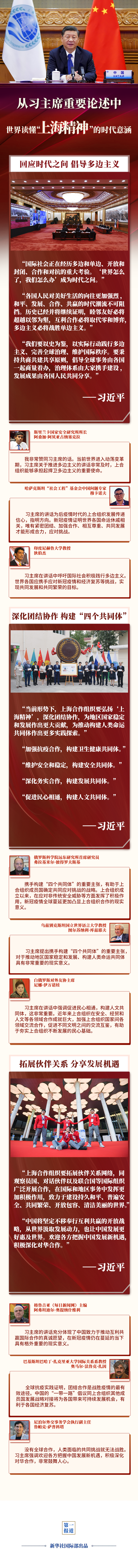 習主席的講話引發(fā)國際社會積極反響。多國專家學者表示,習主席的重要論述為上合組織的發(fā)展指明方向,豐富“上海精神”的時代意涵,為推動構建更加緊密的命運共同體注入強大動力——