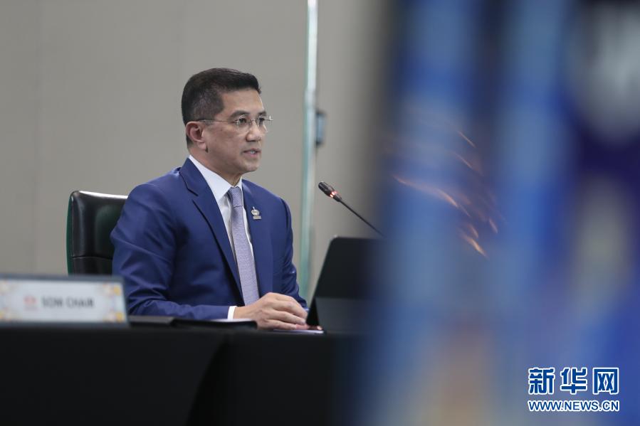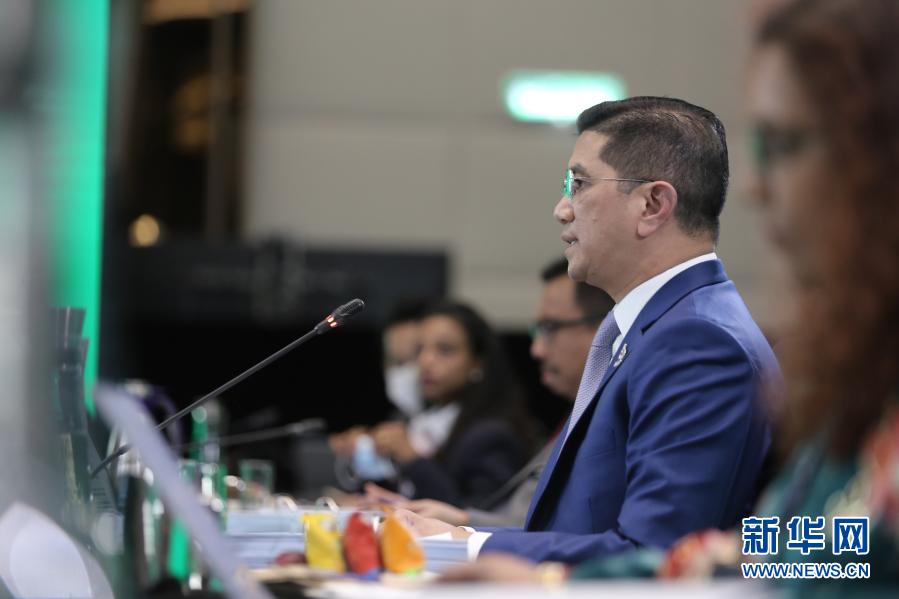 11月16日,在馬來(lái)西亞吉隆坡,馬來(lái)西亞國(guó)際貿(mào)易和工業(yè)部部長(zhǎng)阿茲明·阿里在亞太經(jīng)濟(jì)合作組織部長(zhǎng)會(huì)議上講話。新華社發(fā)(亞太經(jīng)合組織供圖)