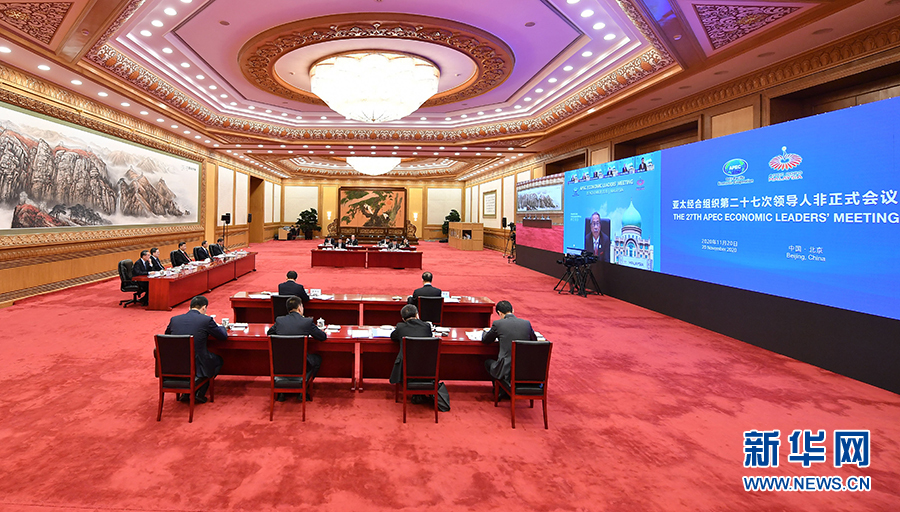 11月20日晚,國(guó)家主席習(xí)近平在北京以視頻方式出席亞太經(jīng)合組織第二十七次領(lǐng)導(dǎo)人非正式會(huì)議并發(fā)表重要講話。 新華社記者 李響 攝