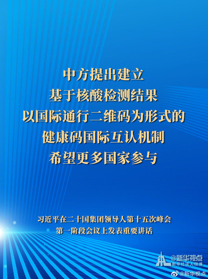 11月21日,國家主席習(xí)近平在二十國集團(tuán)領(lǐng)導(dǎo)人第十五次峰會第一階段會議上發(fā)表重要講話。一起來看習(xí)主席的G20金句。