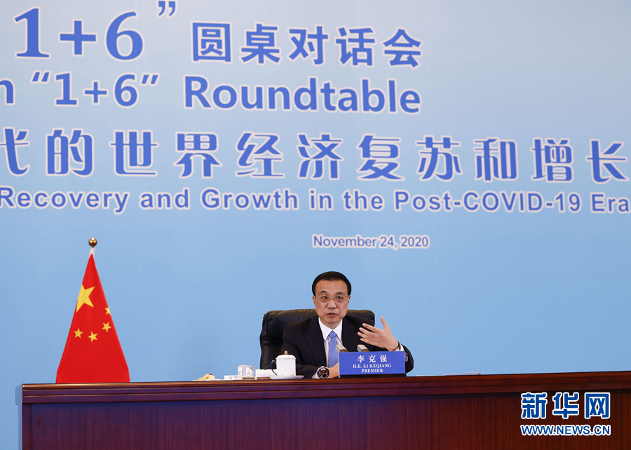 新華社北京11月24日電(記者鄭明達)國務院總理李克強11月24日晚在釣魚臺國賓館同世界銀行行長馬爾帕斯、國際貨幣基金組織總裁格奧爾基耶娃、世界貿(mào)易組織副總干事沃爾夫、國際勞工組織總干事賴德、經(jīng)濟合作與發(fā)展組織秘書長古里亞和金融穩(wěn)定理事會主席夸爾斯舉行第五次“1+6”圓桌對話會。會議以視頻方式舉行,圍繞“促進后疫情時代的世界經(jīng)濟復蘇和增長”主題,就世界經(jīng)濟形勢、中國經(jīng)濟形勢以及后疫情全球經(jīng)濟治理等議題深入交流。