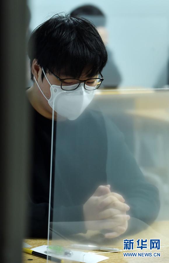 12月3日,在韓國京畿道城南市,一名考生在考試中。新華社發(fā)(李相浩 攝)