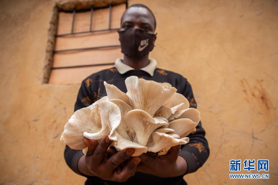 9月9日,在盧旺達首都基加利,埃馬紐埃爾·阿希馬納收獲食用菌。新華社發(fā)(西里爾·恩德格亞攝)