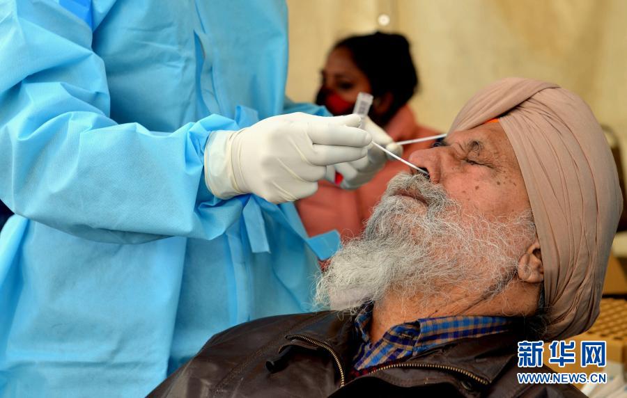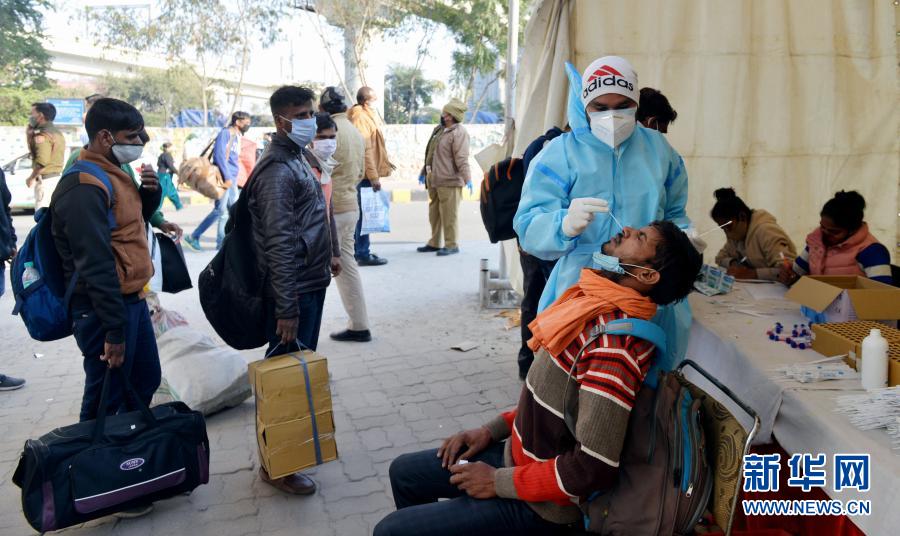 12月19日,乘客在印度德里一處巴士終點(diǎn)站接受新冠病毒檢測取樣。新華社發(fā)(帕塔·薩卡爾攝)