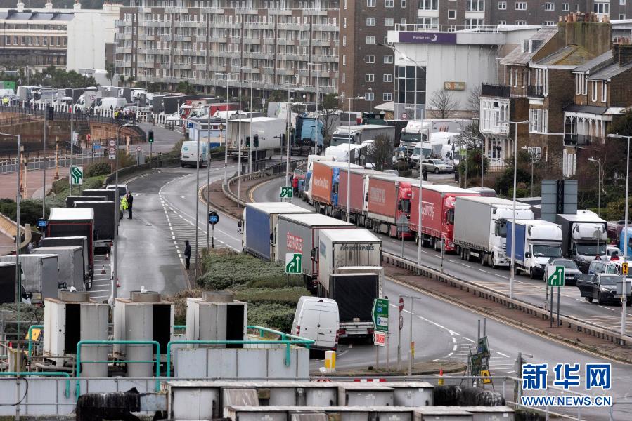 此前,為應對英國近期出現(xiàn)的變異新冠病毒,法國宣布從當?shù)貢r間20日午夜起48小時內(nèi)禁止來自英國的所有人員旅行,包括與公路、鐵路、航空、水路有關(guān)的貨運人員旅行。這給英國與歐盟國家之間的貨物運輸帶來極大影響。自邊境關(guān)閉以來,大約有2850輛卡車被困在英國肯特郡。