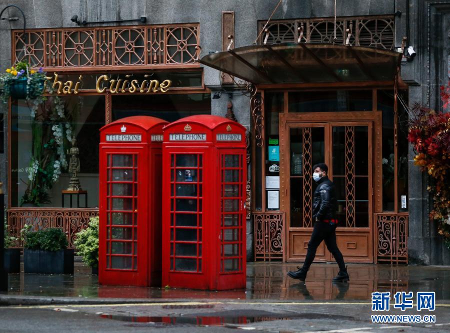 12月21日,一名戴口罩的男子經(jīng)過(guò)英國(guó)倫敦特拉法加廣場(chǎng)旁一家關(guān)閉的餐廳。新華社記者 韓巖 攝