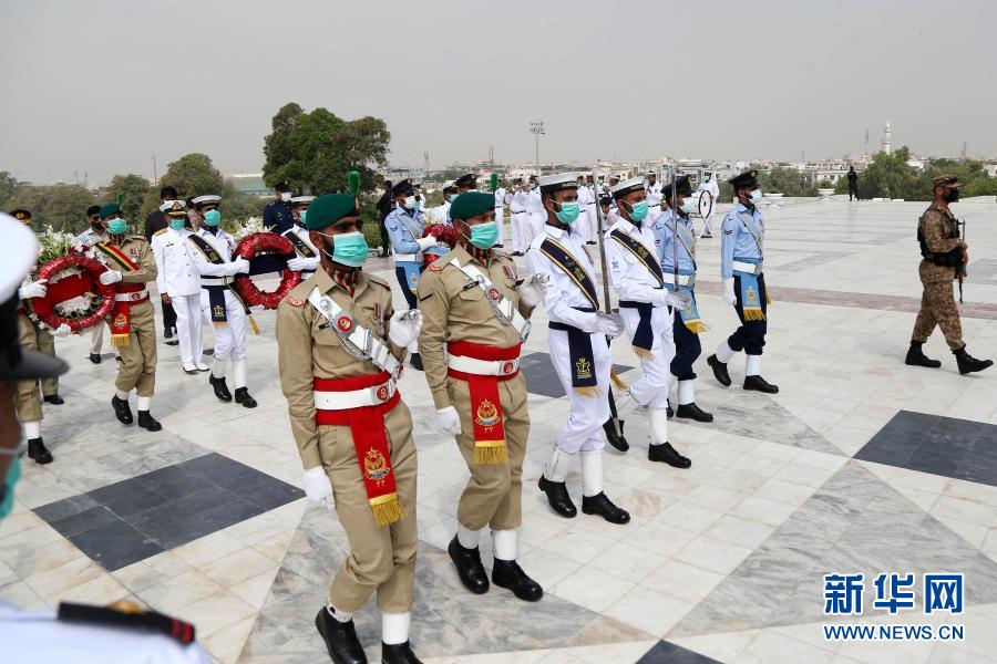 3月23日,巴基斯坦軍人在位于卡拉奇的國父真納墓參加“巴基斯坦日”紀念活動。