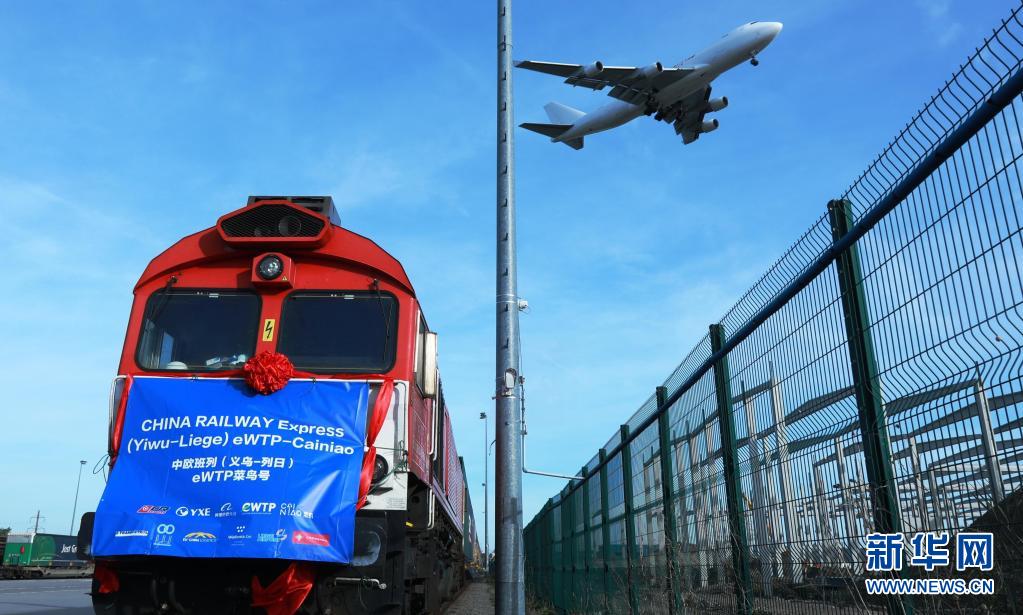 2019年10月25日,滿載著82個標(biāo)準(zhǔn)箱的中歐班列(義烏—列日)“世界電子貿(mào)易平臺(eWTP)菜鳥號”首趟列車抵達比利時列日物流多式聯(lián)運貨運場站。新華社記者 潘革平 攝