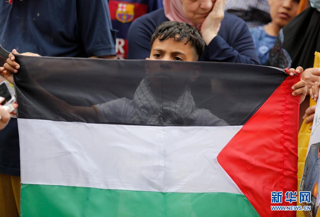 5月15日,一名兒童在黎巴嫩首都貝魯特參加抗議示威活動(dòng),聲援巴勒斯坦民眾。