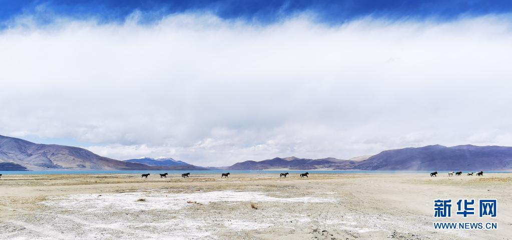 野馬在佩枯錯(cuò)旁奔馳(5月14日攝,手機(jī)照片)。