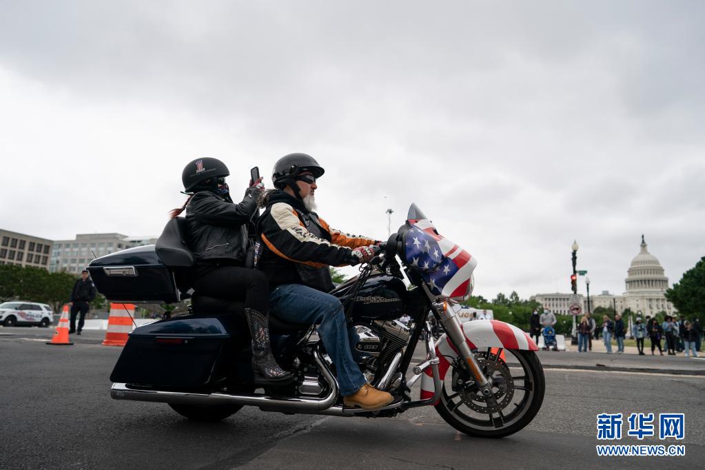 5月30日,在美國(guó)首都華盛頓,人們參加“滾雷”摩托車(chē)大游行。