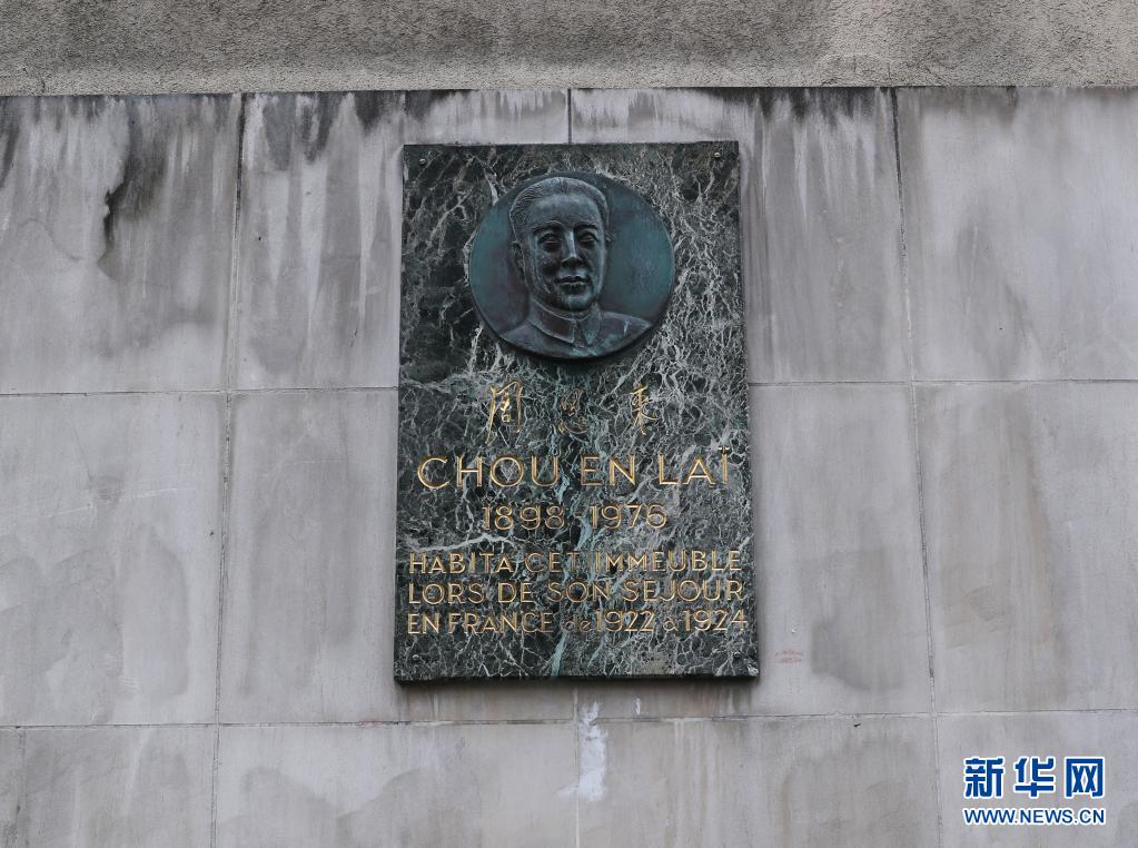 這是2021年4月11日在法國(guó)巴黎十三區(qū)戈德弗魯瓦街上的“海王星旅館”外拍攝的帶有周恩來(lái)頭像浮雕的紀(jì)念牌。新華社記者 高靜 攝